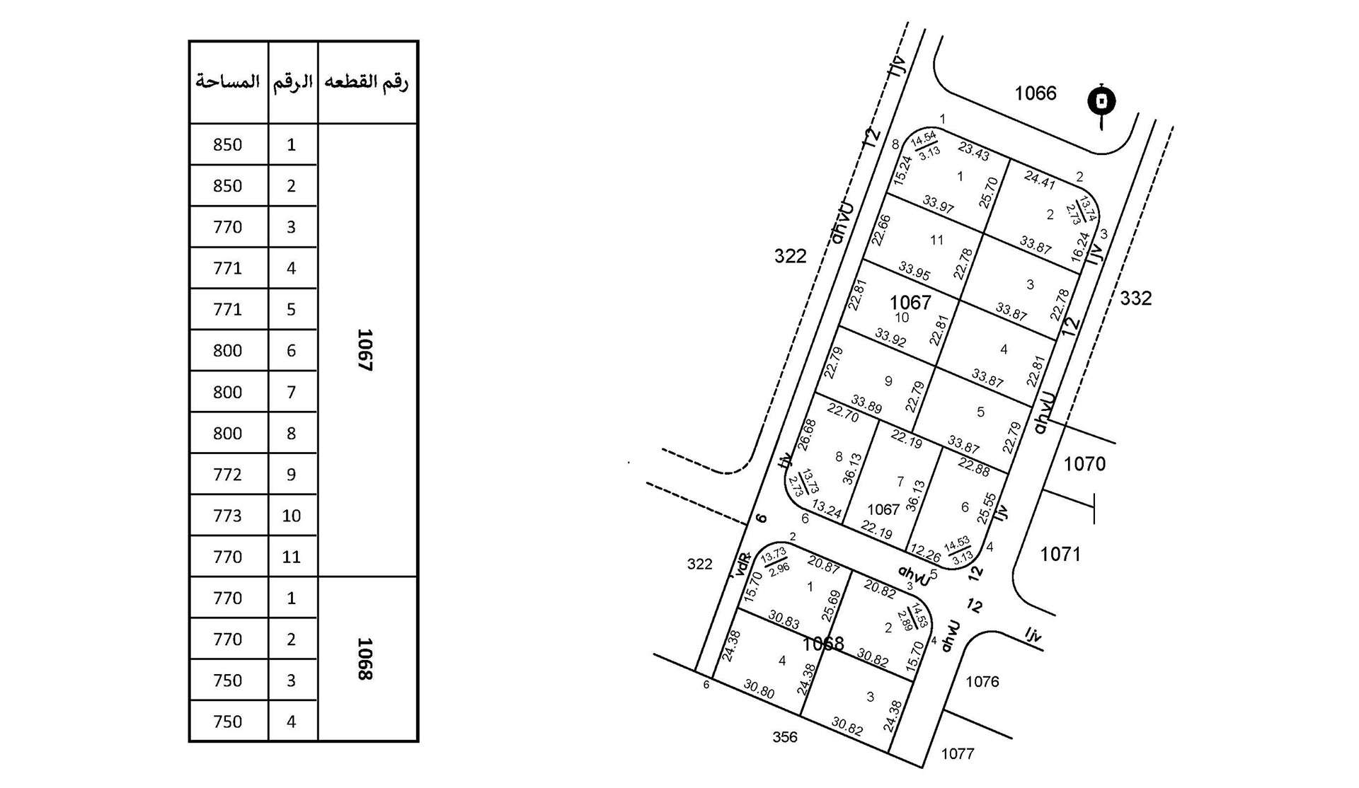 المساحات تتراوح بين 750 م² – 850 م²