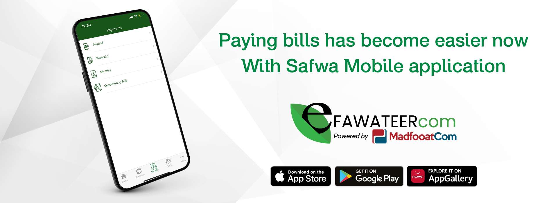 Dear customer, all the payment services through eFAWATEERcom are available on Safwa Mobile application