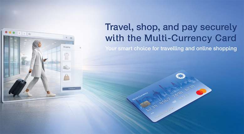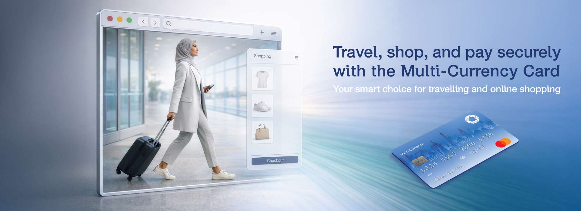 The Safwa Bank Multi-Currency Card is a prepaid card that allows you to spend in multiple currencies using one card only, reducing repeated currency conversion costs and offering a smarter, more convenient payment experience.